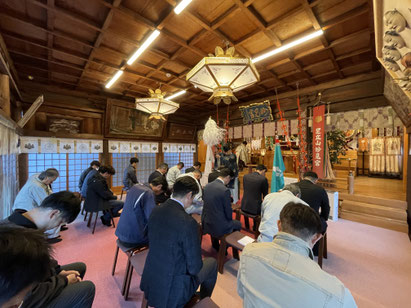 妙見神社にて令和7年の12月度の安全祈願祭を執り行いました。 大同建設株式会社社員および大同建設同友会各社からの出席者と共に、建設工事における無事故無災害を祈願いたしました。